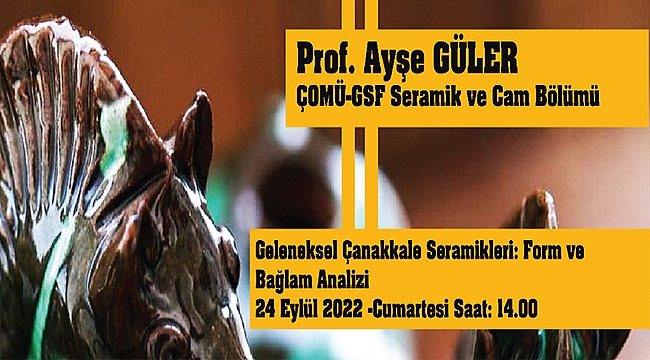 Çanakkale Belediyesi Seramik Müzesi, Kentte Sanat Konferansları kapsamında 24 Eylül 2022 Cumartesi günü Saat: 14.00'de Çanakkale Onsekiz Mart Üniversitesi (ÇOMÜ) Güzel Sanatlar Fakültesi Seramik ve Cam Bölümü Öğretim Görevlisi Prof. Dr. Ayşe Güler’i konuk ediyor.