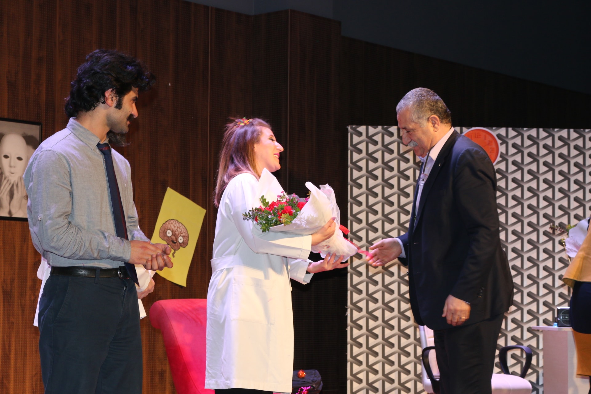 Kepez Belediye Başkanı Dr. Ömer Faruk MUTAN, oyununun sonunda ekibe çiçek takdiminde bulunarak, “bizleri düşündüren, güldüren ve bazen de hüzünlendiren oyuncularımıza güzel bir akşam yaşattıkları için teşekkür ediyorum” dedi.
