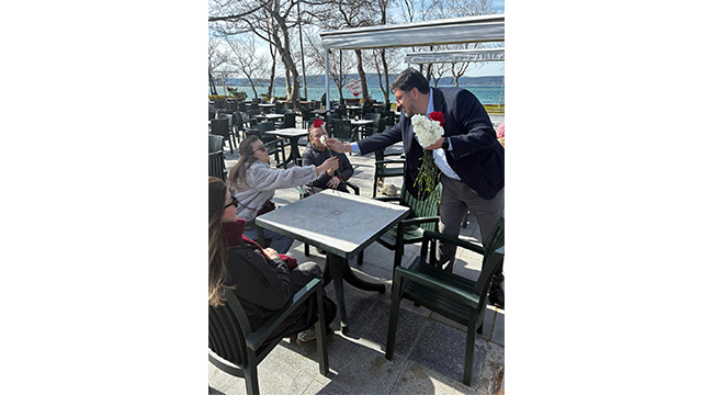 Etkinlikte kadınlara karanfil takdim edilirken, günün anlam ve önemine vurgu yaptı.