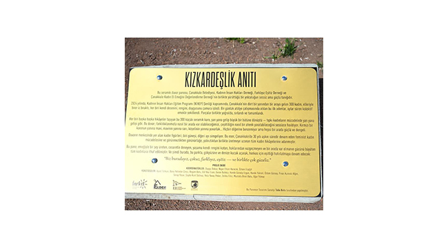 Farklıyız Eşitiz Derneği, Kadın İnsan Hakları Derneği, Elder- KDM ve Çanakkale Belediyesi iş birliğiyle, 8 Mart 2025’te Kadının İnsan Hakları Şenliği gerçekleştirilmişti. Bu programda, 300 kadının katılımı ile “seramik atölyesi” çalışması yer almış ve sonucunda ortaya çıkan ürünler özenle bir araya getirilerek bir anıta dönüştü. Kadınlar tarafından emek emek hazırlanan ve kentin kalbinde yer alan “ Kız Kardeşlik Anıtı” 30 Mayıs 2025 Cuma günü düzenlenen törenle açıldı.