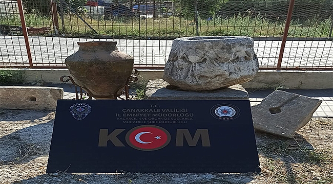 Soruşturma sonucunda elde edilen tarihi eserlere el konuldu. Kaçakçılık ve Organize Suçlarla Mücadele Şube Müdürlüğünce, Ezine’de yapılan çalışmalar sonucu geçtiğimiz gün Troya Müze Müdürlüğü görevlileri ile birlikte L.P. ve M.E.Y. isimli şahısların işyerinde arama yapıldı. Arama neticesinde; Roma ve Bizans dönemine ait olduğu değerlendirilen mermer, mimari parça ve 1 adet pişmiş topraktan imal küp olmak üzere çeşitli değişik ebatlardaki 26 adet kültür varlığı ele geçirildi. Eserlere, ilgili arama ve el koyma kararına istinaden el konuldu.