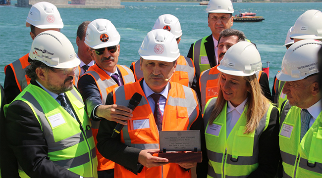 1915 Çanakkale Boğaz Köprüsü’nün Asya Kule Keson Temeli bugün denizle buluştu. Temeli batırma operasyonuna bizzat Ulaştırma ve Altyapı Bakanı Mehmet Cahit Turhan katıldı.