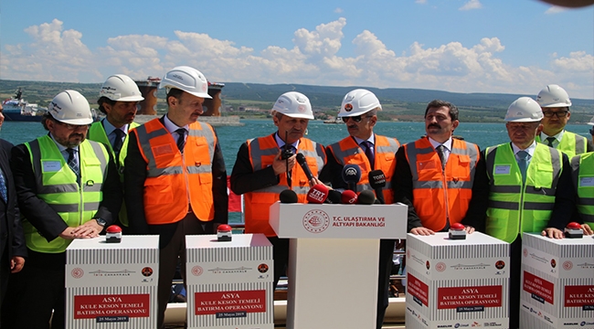 Bugün ise köprünün Asya Kule Keson Temeli suya indirildi. Ulaştırma ve Altyapı Bakanı Mehmet Cahit Turhan beraberindeki heyetle tören için Çanakkale’deydi. Bakan Turhan kulenin suya indirilmesini bizzat kendisi yaptı.
