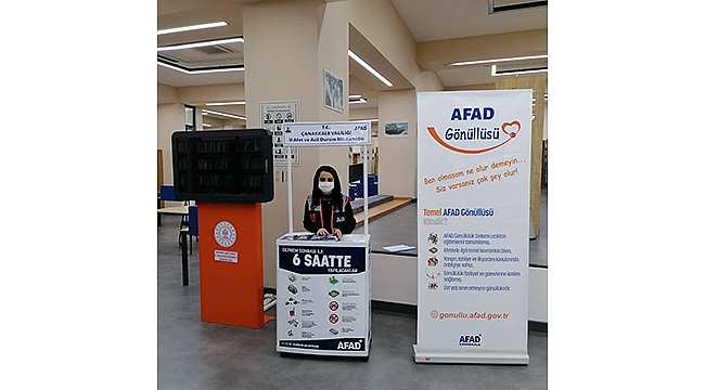 AFAD ve kütüphane işbirliğinde, okuyuculara AFAD faaliyetleri hakkında bilgi vermek için stant açıldı.