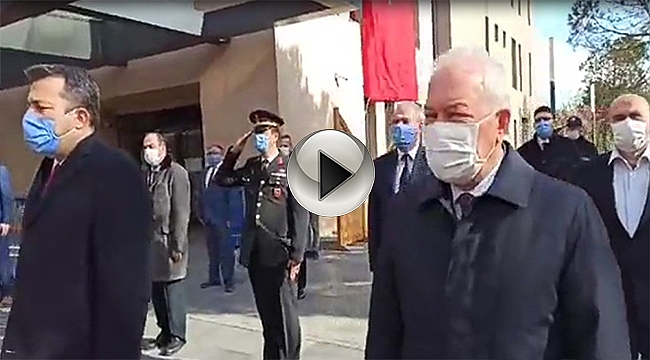 Koronavirüs tedbirleri kapsamında Lapseki Kaymakamlığı önünde düzenlenen Çelenk sunma Törenine, Lapseki Kaymakamı Tahir Şahin, Lapseki Belediye Başkanı Eyüp Yılmaz ve kurum amirleri katıldı.