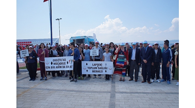 Lapseki Toplum Sağlığı Merkezi (TSM) tarafından organize edilen etkinlikte sahil boyuna stant açılarak bilgilendirme broşürü dağıtıldı. Kordon boyunda gerçekleştirilen sağlıklı yaşam yürüyüşüne Belediye Başkanı Eyüp Yılmaz, İlçe Halk Sağlığı Müdürü Mehmet Doğan, Lapseki Devlet Hastanesi Başhekimi Bekir Şahin, idari amirler, öğrenciler ve vatandaşlar katıldı. Öğrenciler ellerinde "Obezite ile Mücadele İçin Bir Adımda Sen At" yazan pankartlarıyla yürüyüşe katıldı. İlçe Halk Sağlığı Müdürü Mehmet Doğan sağlıklı bir yaşama dikkat çekerek " Obeziteyle savaşmak için hareketli bir yaşama davet ediyoruz" diyerek Lapseki halkının daha yoğun katılımlarını beklediklerini ifade etti.