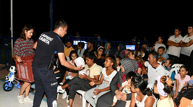 Amfi tiyatroda gösterime sunulan filme vatandaşlar ilgi gösterdi. Zabıta ekipleri tarafından izleyicilere patlamış mısır ikramı yapıldı.