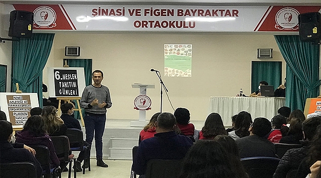 Şinasi ve Figen Bayraktar Ortaokulu Rehberlik ve Psikolojik Danışma Servisi tarafından 6. kez düzenlenen ve farklı mesleklerden uzmanların katıldığı Meslek Tanıtım Günleri etkinliğine Çanakkale Çalışma ve İş Kurumu İl Müdürlüğü Meslek Danışmanlığı Biriminde görevli İş ve Meslek Danışmanı Yasin Sezgin katılım gösterdi.