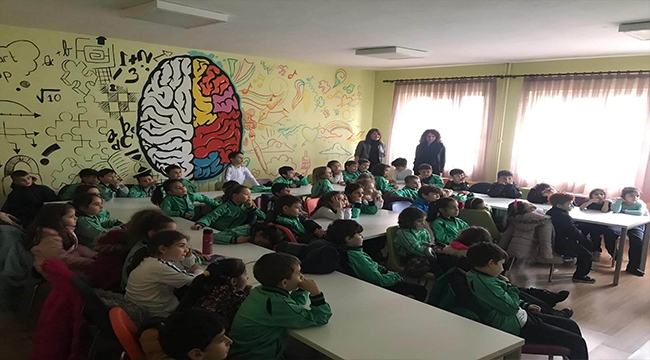 Çanakkale 18 Mart İlkokulunun 1. sınıf öğrencilerine Çanakkale Belediyesi Temizlik İşleri Müdürlüğü tarafından yürütülen faaliyetlere ilişkin Çevre Mühendisi Sultan Özbakır tarafından çevre içerikli eğitim verildi.