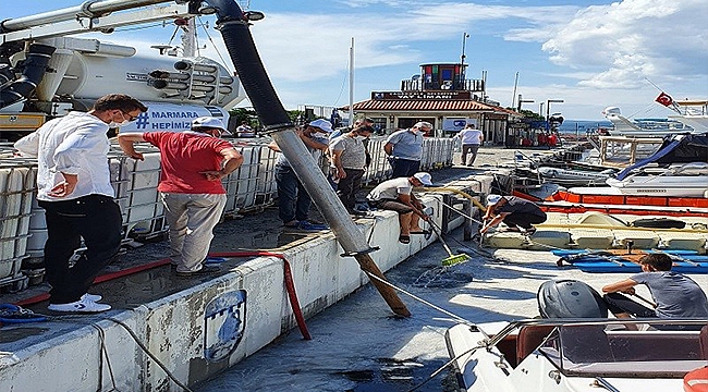Çevre ve Şehircilik Bakanlığı'nın 'Marmara Denizi Eylem Planı' kapsamında Marmara denizinde müsilaj (deniz salyası) kirliliğine yönelik en büyük deniz temizliği seferberliği kapsamında Çanakkale Marinada müsilaj (deniz salyası) temizliğine devam ediliyor.