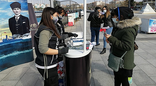 8 Mart Dünya Kadınlar Günü nedeni ile Narkotik Suçlarla Mücadele Şube Müdürlüğü dün kordonda kadınlara maske ve kırmızı karanfil dağıttı. Kadınların gününü kutlayan ekipler, pandemi sürecinde de maske mesafe hijyen uyarısında bulunmayı da ihmal etmediler.