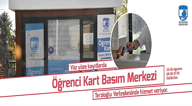 22-26 Ağustos tarihlerinde Çanakkale Onsekiz Mart Üniversitesinde yüz yüze kayıtların gerçekleşiyor olmasından dolayı öğrenci arkadaşlarımızın toplu taşımada kullandıkları kartların işlemleri için Terzioğlu Yerleşkesi ÖSEM binası önünde bulunan “Öğrenci Kart Basım Merkezi”ne 08.30 – 17.30 saatleri arasında başvurabilirler.