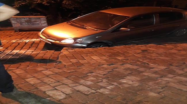 Mahalle sakinleri durumu belediyeye bildirdi. Otomobil çukurdan kepçe yardımıyla çıkarıldı.