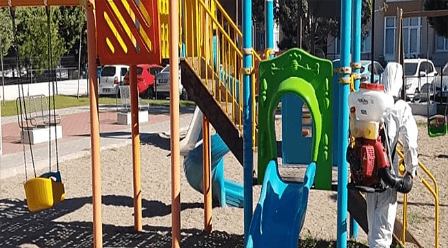 Koronavirüsle mücadele kapsamında çalışmalarını aralıksız sürdüren Çanakkale Belediyesine bağlı ekipler, kent genelindeki parklarda da düzenli olarak dezenfeksiyon çalışmaları yürütüyor. Ekipler, parklar içerisinde yer alan çocuk oyun grupları, oturma alanları, çöp kovaları gibi kent mobilyalarını rutin olarak dezenfekte ediyor.