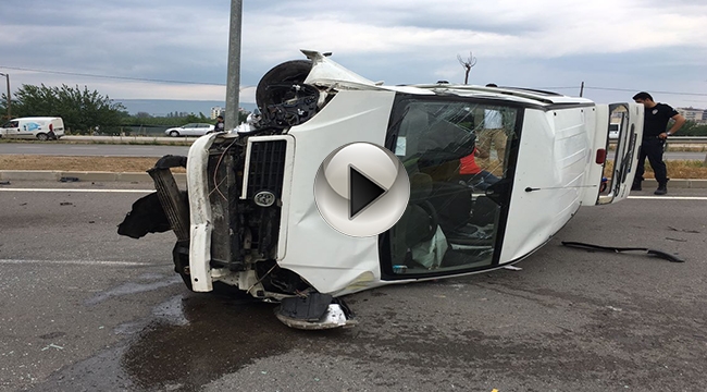 Çarpmanın etkisiyle devrilen araç sürüklenerek durabildi.