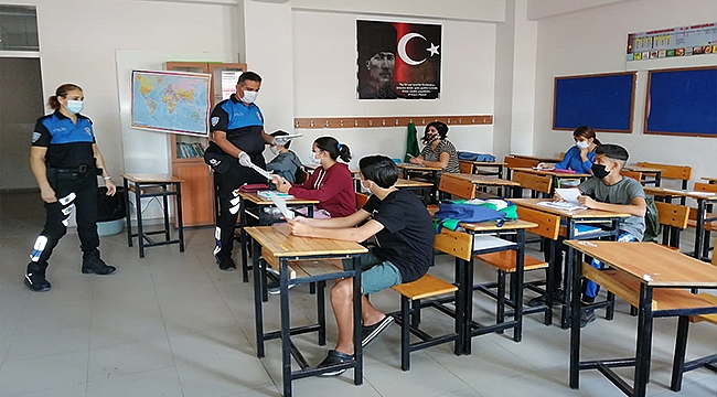 POLİSTEN ÖĞRENCİLERE "COVİD" EĞİTİMİ