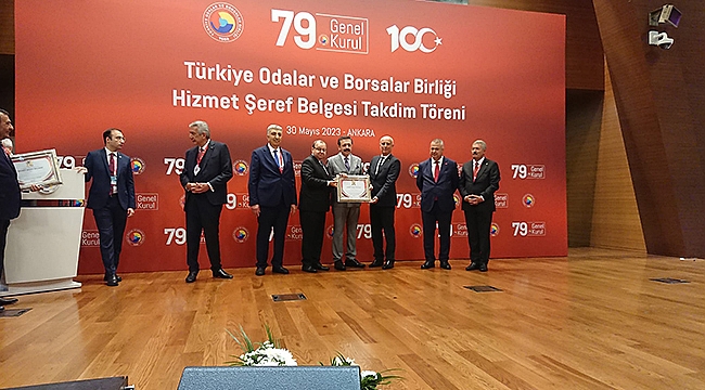 Törende, TOBB Genel Kurul Delegesi Biga TSO Başkanı Şadan Doğan'a  TOBB Hizmet Şeref Belgesi Takdim edildi.
