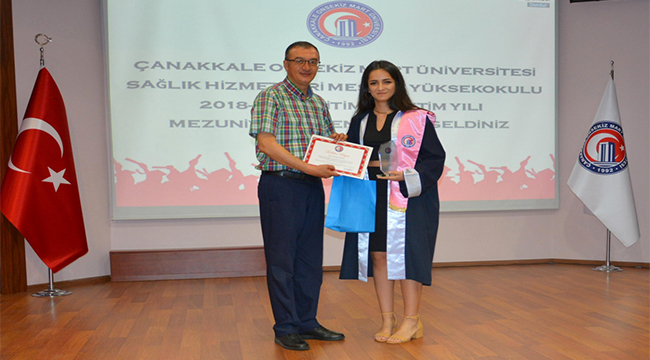 “Sağlık alanında kendi başımıza ayrı mesleklerin sahibi olmakla birlikte insan sağlığına hizmet veren aynı yüksekokulun elemanları ve yine aynı yüksekokulun öğrencileriyiz. Amacımız üniversitemiz bünyesinde bu aidiyet duygusunun gelişmesidir. Türkiye’de üniversiteler arasında önemli bir yere sahip olan Çanakkale Onsekiz Mart Üniversitesi’nden mezun olmanın ayrıcalığını her zaman hissedecek, bu gururu her zaman yaşayacaksınız. Yolunuz ve bahtınız açık olsun” dedi.