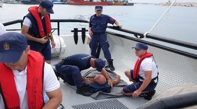 Çanakkale'de balık tutmak için kano ile denize açılan Ömer Yılmaz, yüksek tansiyon sebebiyle bayılınca yardımına sahil güvenlik ekipleri yetişti.