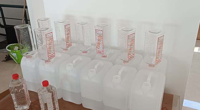 İl Emniyet Müdürlüğü tarafından konuyla ilgili yapılan bilgilendirmede, “10.07.2023 günü ilimizde Kaçakçılıkla Mücadele kapsamında, KOM Şube Müdürlüğümüz Kaçakçılık Suçları Büro Amirliği görevlileri olarak yapılan çalışmalarda Sahte Alkol Yapımı ile ilgili 5607 SKM suçundan; şahısların iş yerinde( deposunda ) yapılan adli arama neticesinde toplamda;