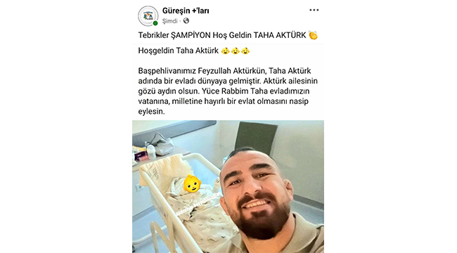 Ülkemizin en başarılı güreşçileri arasında yer alan 1. Karakucak Dünya Şampiyonu, Kırkpınar finalisti ve CW Enerji Ligi ikincisi Feyzullah Aktürk, baba olmanın mutluluğunu yaşadı.