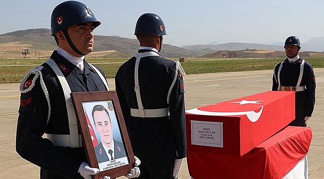 Siirt Havalimanı'nda düzenlenen törende, evli ve 1 çocuk babası olan şehit Ceylan'ın (33) Türk bayrağına sarılı naaşı katafalka konuldu, saygı duruşunda bulunulmasının ardından öz geçmişi okundu.