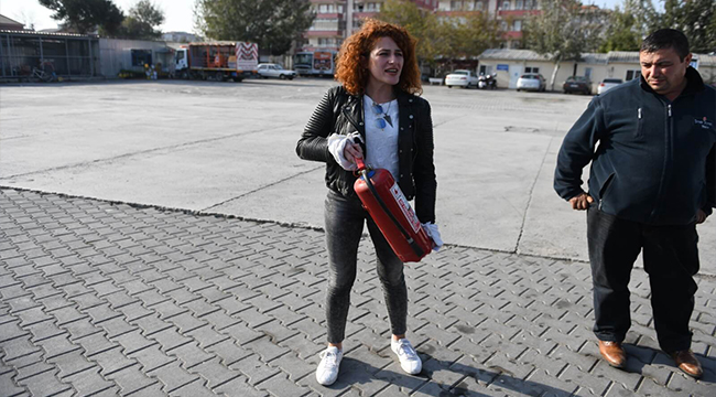 Halk Otobüsleri Merkez Garajı’nda düzenlenen eğitim kapsamında; şehir içi toplu taşıma hizmetinde oluşabilecek yangınlara karşı alınacak tedbirler, yangın anında yapılması gerekenler ve ilk müdahalenin nasıl yapılacağı uygulamalı şekilde anlatıldı.