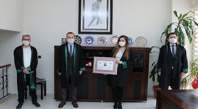 Öte yandan, sosyal mesafenin dikkat çektiği törende Av. Ayşe Can’a da ruhsatını takdim eden Baro Başkanı Bülent Şarlan, S”mesafemizi koruyarak yaptığımız törende, Avukatlık yeminini ederek ruhsatını alan ve cübbesini giyerek Avukatlığa ilk adımı atan meslektaşım Av. Ayşe Can’ı kutluyor, başarılar diliyorum” ifadelerinde bulundu.