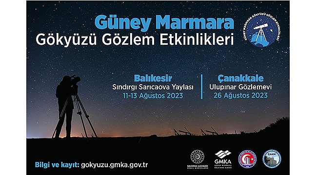 Güney Marmara Kalkınma Aajansı’nın öncülüğünde gerçekleştirilecek etkinlik ile uzay meraklıları bir araya gelerek derin uzay gözlemleri, astrofotoğrafçılık, eğitimler, sunumlar, atölyeler ve yarışmalar ile 26 Ağustos günü Güney Marmara Gökyüzü Gözlem Etkinlikleri’ni gerçekleştirecek.