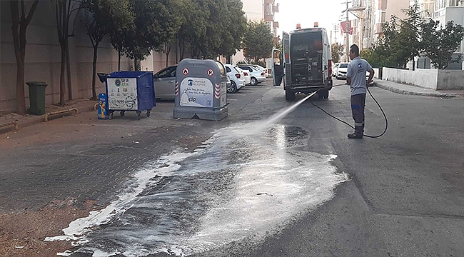 Ekipler, kent genelinde yürüttükleri çalışmalar kapsamında konteyner temizliklerine de ayrı bir önem gösteriyor. Detaylı konteyner temizliklerinin yanı sıra, konteyner çevreleri de düzenli aralıklarla basınçlı sularla yıkanarak, temizleniyor.