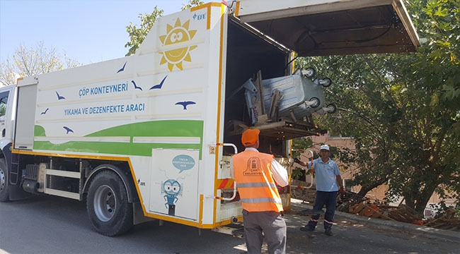 Çan Belediyesi ilçede bulunan 1100 adet çöp konteynerinin periyodik yıkama ve dezenfektasyon işlemlerini sürdürüyor.