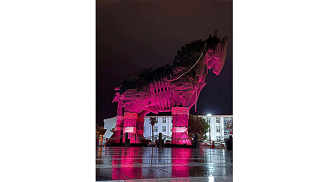 1-31 Ekim Meme Kanseri Farkındalık Ayı kapsamında, Çanakkale’deki Truva Atı pembe renge bürünerek farkındalık mesajı verdi.