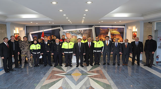 Türk Polis Teşkilatının 174. kuruluş yıldönümü dolayısıyla İl Emniyet Müdürü Celal Sel ve İl Emniyet Müdürlüğü personeli Vali Orhan TAVLI’yı ziyaret ettiler.