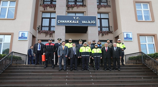 Ziyaretin sonunda Vali Orhan TAVLI, günün anısına Emniyet Müdürü Celal SEL’e 18 Mart Deniz Zaferi’nin 104. Yıl dönümü için hazırlanan taşbaskı tablo hediye ederek toplu fotoğraf çektirdi.