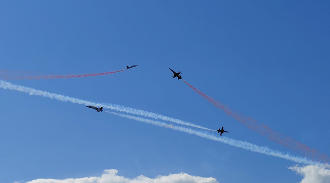 Yoğun katılımla gerçekleşen gösteride vatandaşlar, gökyüzünü süsleyen akrobasi hareketlerini heyecan ve gururla takip etti. Bayram coşkusunun doruğa çıktığı etkinlikte Türk Yıldızları’nın performansı izleyenlerden tam not aldı.