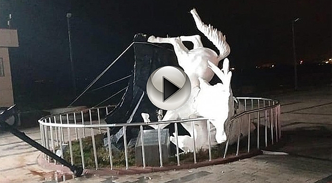UÇAN AT HEYKELİ FIRTINAYA DAYANAMADI