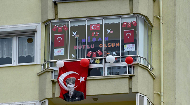 Öte yandan salgın hastalık riskine karşı 23 Nisan’ı evlerinde kutlamaya hazırlanan kentliler de balkonlarını ve pencerelerini bayraklar, 23 Nisan görselleri ve Atatürk posterleri ile donatarak coşkuya ortak oldu.