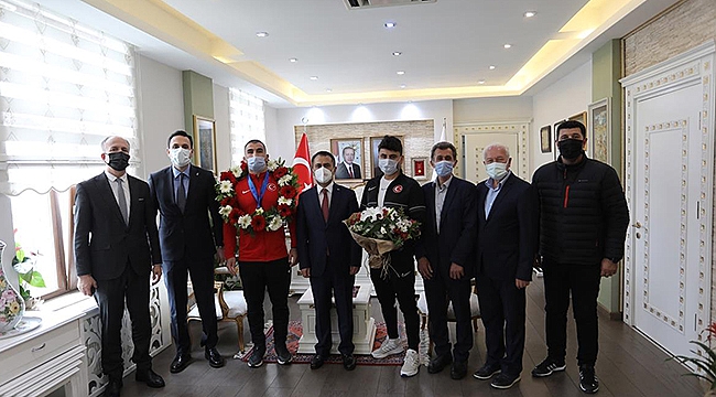 Vali İlhami AKTAŞ, Macaristan'da düzenlenen Avrupa Güreş Şampiyonası'nda altın madalya kazanan Milli Güreşçi Feyzullah AKTÜRK’ü kabul etti.