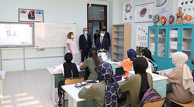 Toki Anadolu Lisesi öğretmen ve öğrencileri ile bir süre sohbet eden Vali İlhami AKTAŞ, koronavirüs ile mücadelede önem arz eden temizlik, maske ve mesafe kurallarına uymaları yönünde hatırlatmada bulunarak 2021 – 2022 eğitim – öğretim yılının hayırlı olması temennisinde bulundu.