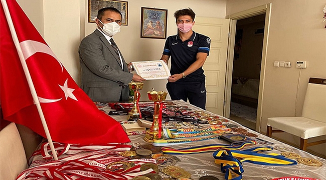 VALİ AKTAŞ, OLİMPİYATA GİDEN İLK MİLLİ SPORCUMUZ OĞUZ UYAR'I EVİNDE ZİYARET ETTİ