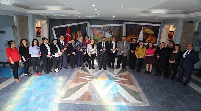 Vali Orhan TAVLI, Vali Yardımcıları Cezmi Batuk, Celil Ateşoğlu, Ali Candan’la birlikte, çalışan kadınların 8 Mart Dünya Kadınlar Gününü kutlayarak karanfil hediye etti.