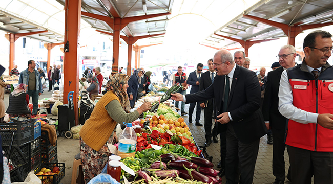 Pazar tezgâhlarını dolaşan Vali Toraman, esnafa hayırlı ve bereketli kazançlar diledi.