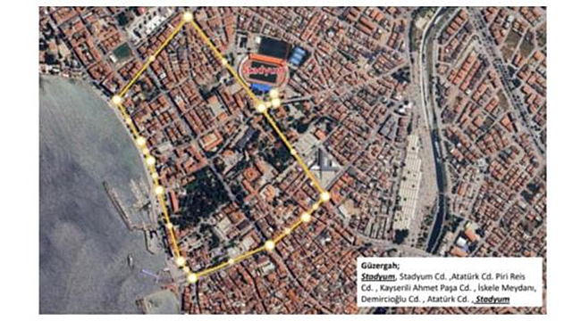 İskele Meydanından Demircioğlu Caddesi üzeri ve Cumhuriyet Bulvarı üzeri Belediye Kavşağına kadar.