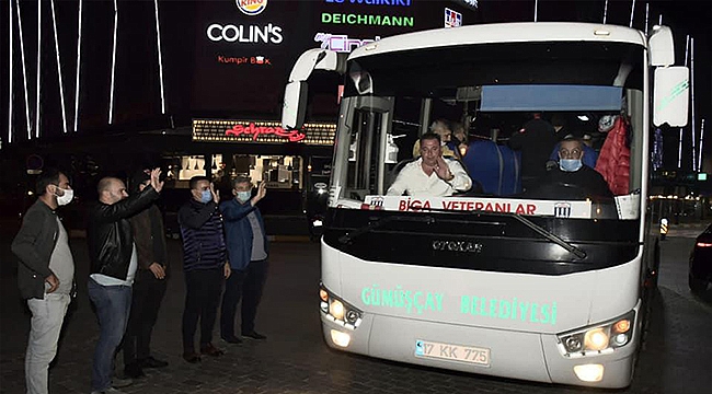 Biga Belediye Başkanı Bülent Erdoğan, Antalya'da düzenlenecek olan Türkiye Veteranlar Turnuvasına katılacak olan Biga Veteranlar Futbol Takımını uğurladı.