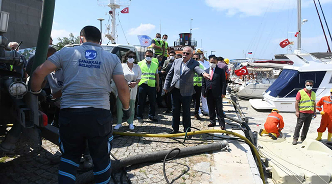 Etkinlik hakkında açıklamada bulunan Başkan Gökhan ise; “Bugün Çevre Günleri etkinlikleri kapsamında Sayın Valimizin başkanlığında toplandık. Tüm Türkiye’de bu saatte Çevre Günü etkinlikleri yapılıyor. Bizim için Çanakkale’de ve Marmara’da en büyük sorun, müsilaj ve buna bağlı olarak kirlilik sorunu. Müsilaj yat limanımızı burayı kaplamış durumda. Burayı acaba temizleyebilir miyiz? Yüzeyde oluşmuş olan bu salya denilen ölmüş planktonların ya da yüzeyde birikmiş planktonların temizlenmesi de söz konusu olabilir mi? Onun denemesini yapıyoruz. Biz de burada çıkan atıkların nasıl bertaraf edileceği konusunda fikir alışverişinde bulunuyoruz. Çünkü bu atık her yere atılamaz, onun da bir standardı var. Şu an itibari ile deniz yüzeyini temizleyebilir miyiz? Onları alabilir miyiz? diye çalışıyoruz, ama çok küçük çaplı borularla değil de bunu büyük temizlik gemileri ile komple yapmak günlerce çalışmak lazım. Bu şekilde başarılı olması mümkün değil” dedi.