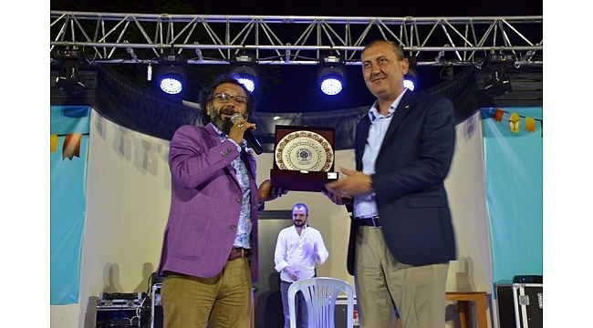 Biga Belediye Başkanı İsmail Işık, program sonunda Yazar Sinan Yağmur'a hediye takdim etti.