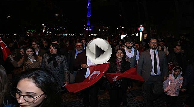 Çanakkale Gençlik ve Spor İl Müdürlüğü, İl Milli Eğitim Müdürlüğü ve Belediye organizasyonuyla, Cumhuriyet Meydanından toplanan binlerce Çanakkaleli, ellerinde Türk bayrakları ve meşalelerle marşlar eşliğinde yürüyüş yaptı. Fener alayına, Cumhur İttifakı AK Parti Çanakkale Belediye Başkan adayı Ayhan Gider, eşi Ayşe Gider ve Belediye ile İl Genel Meclis üyesi adayları da katıldı. Belirlenen güzergah boyunca devam eden yürüyüş, İskele Meydanında sona erdi.